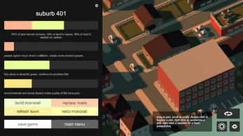 watch smog clear up as you remove roads. lure humans out of isolation by building places to hang out and have fun. explore new forms of transportation.